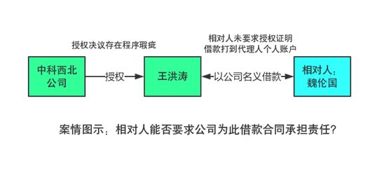 二审法院陕西高院认为,由于先前的多笔生意往来,对魏伦国而言王洪涛具有代表中科西北公司职权的外观,不能认为其没有尽到合理的注意义务。而虽然中科西北公司抗辩称股东会召集程序违法,但如《民法总则》第八十五条“营利法人的权力机构、执行机构作出决议的会议召集程序、表决方式违反法律、行政法规、法人章程,或者决议内容违反法人章程的,营利法人的出资人可以请求人民法院撤销该决议,但是营利法人依据该决议与善意相对人形成的民事法律关系不受影响”、《公司法司法解释(四)》第六条“股东会或者股东大会、董事会决议被人民法院判决确认无效或者撤销的,公司依据该决议与善意相对人形成的民事法律关系不受影响”、《合同法》第四十九条“行为人没有代理权、超越代理权或者代理权终止后以被代理人名义订立合同,相对人有理由相信行为人有代理权的,该代理行为有效”,等等条文中体现的不能以内部的违法对抗外部的善意第三人的法理,不能以股东会决议的违法对抗外部的善意第三人。故二审法院撤销一审判决,认定在中科西北公司与魏伦国之间形成了民间借贷关系。